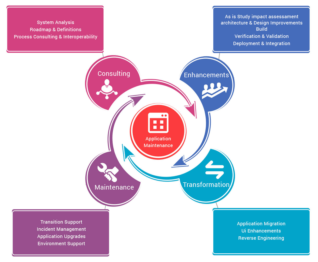 Our qualified team will deliver an Application Maintenance and Enhancement services that will provide immediate business value to your organization:
